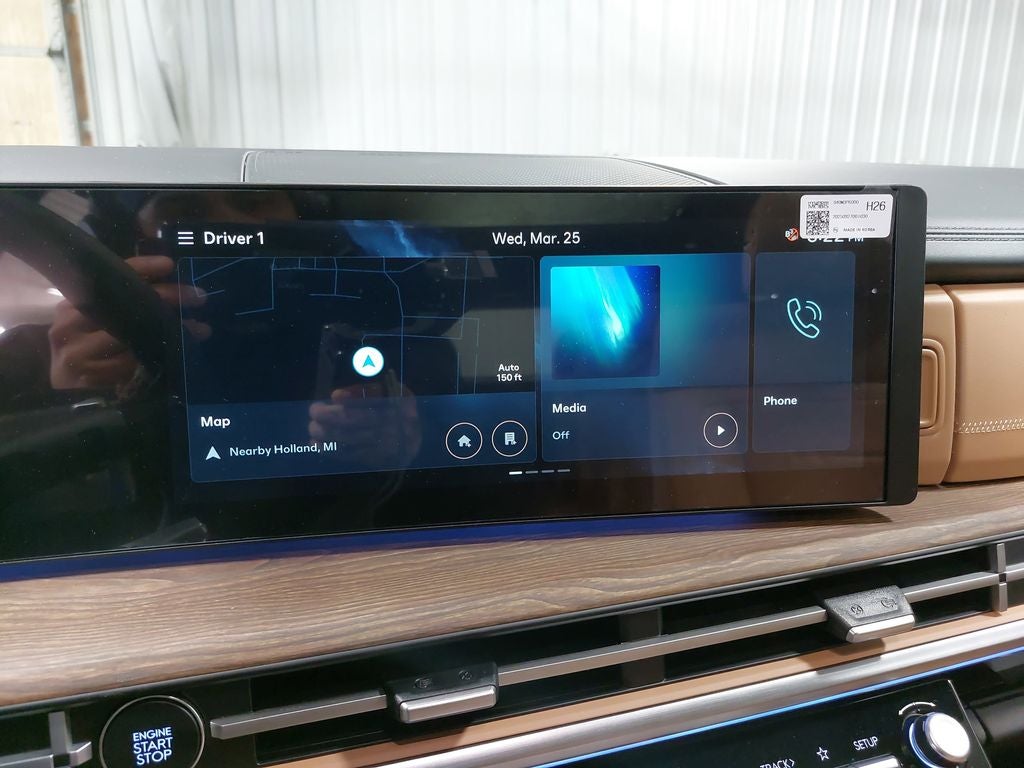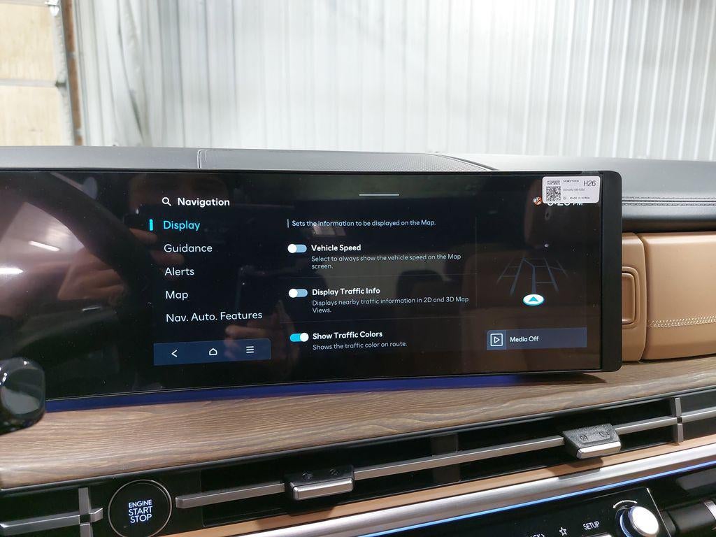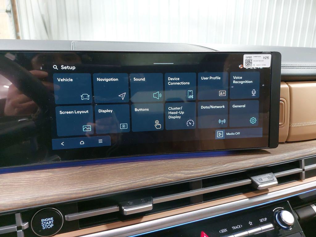 - Radio: AM/FM/HD Bose Premium Audio System -inc: 12 speakers including subwoofer, external amplifier, 12.3" wide touchscreen, Apple CarPlay and Android Auto, Bluetooth® hands-free w/wireless audio streaming, dynamic voice recognition, USB connectivity, SiriusXM, Blue Link+ connected car system, over-the-air updating capability, navigation system including traffic flow w/incident data via HD Radio (HERE) and rear seat quiet mode