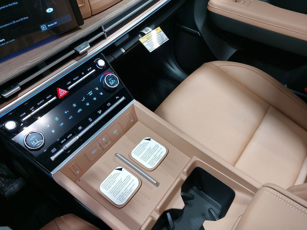 Santa Fe Calligraphy, 2.5L I4, AWD, Serenity White, Pecan Brown w/Leather Seat Trim, 12 Speakers, Apple CarPlay & Android Auto, Auto High-beam Headlights, Automatic temperature control, Brake assist, Electronic Stability Control, Exterior Parking Camera Rear, First Aid Kit, Front dual zone A/C, Heads-Up Display, Heated and Ventilated Front Bucket Seats, Heated front seats, Heated rear seats, Heated steering wheel, Memory seat, Navigation System, Power driver seat, Power Liftgate, Power moonroof, Quilted Premium Nappa Leather Seat Trim, Radio: AM/FM/HD Bose Premium Audio System, Rain sensing wipers, Security system, Ventilated front seats, Wheels: 21 x 8.5J Unique Dark Finish Alloy. 20/28 City/Highway MPG