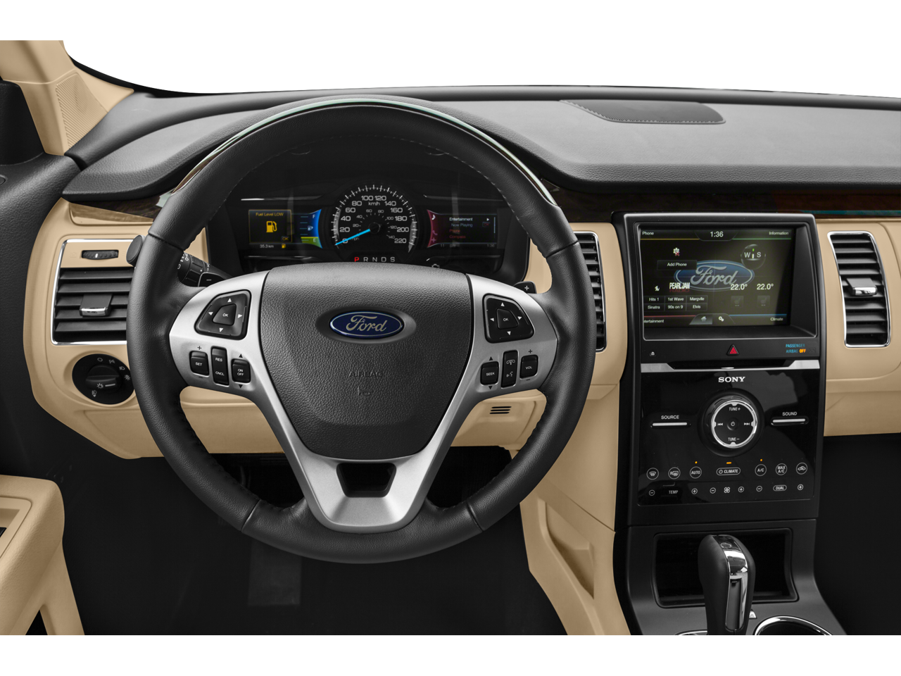 Step inside and be captivated by the premium features that elevate the Flex Limited's cabin. The 12-speaker Sony audio system and SYNC with MyFord Touch provide an immersive entertainment experience, while the perforated leather-trimmed bucket seats and dual-zone automatic climate control ensure your utmost comfort.