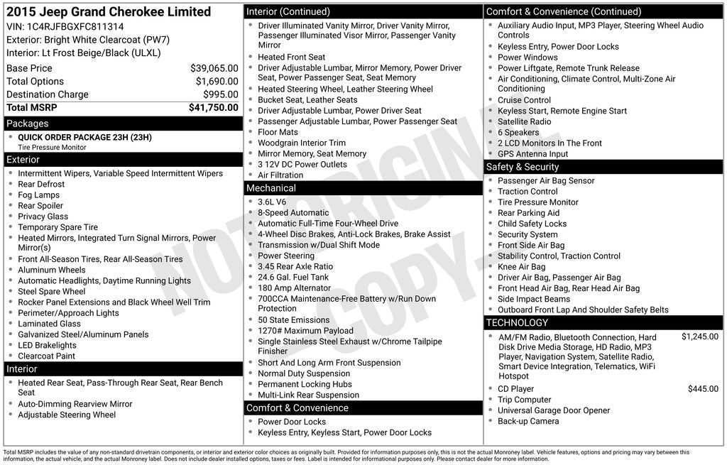 Whether you're navigating the city or exploring the great outdoors, this 2015 Jeep Grand Cherokee Limited delivers the perfect blend of capability, comfort, and technology. With an EPA-estimated 24 mpg on the highway, you can go further between fill-ups.