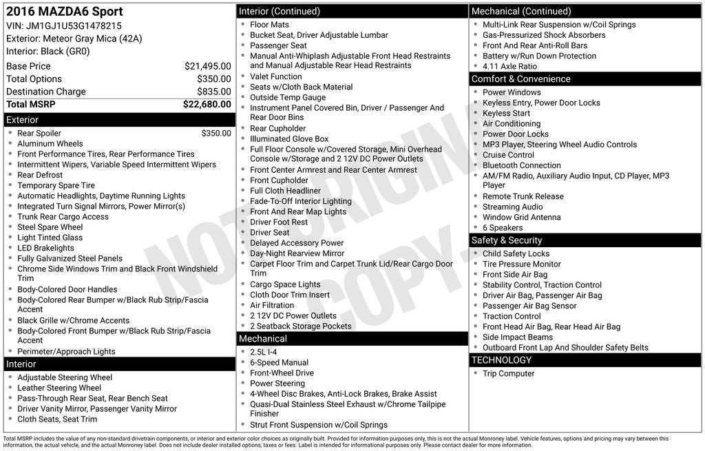 - Vehicle Name: Mazda Mazda6
