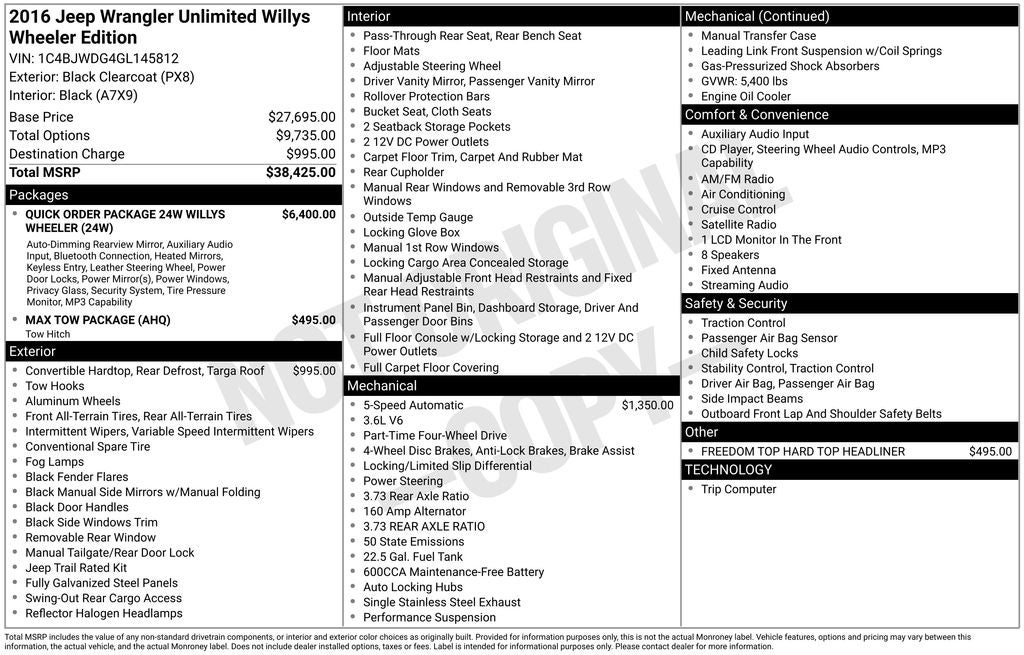 - Wheels: 17" x 7.5" High Gloss Black Willys