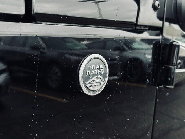 Inside, you'll find a well-appointed cabin with premium amenities, including an auto-dimming rearview mirror, MOPAR slush mats, and Uconnect voice command with Bluetooth® connectivity. The rear passenger assist handles and class II receiver hitch make this Wrangler a versatile companion for all your adventures, whether it's exploring the great outdoors or towing your favorite toys.