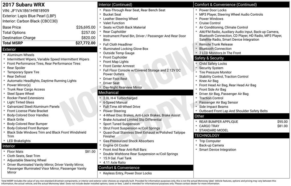- Vehicle Name: Subaru WRX