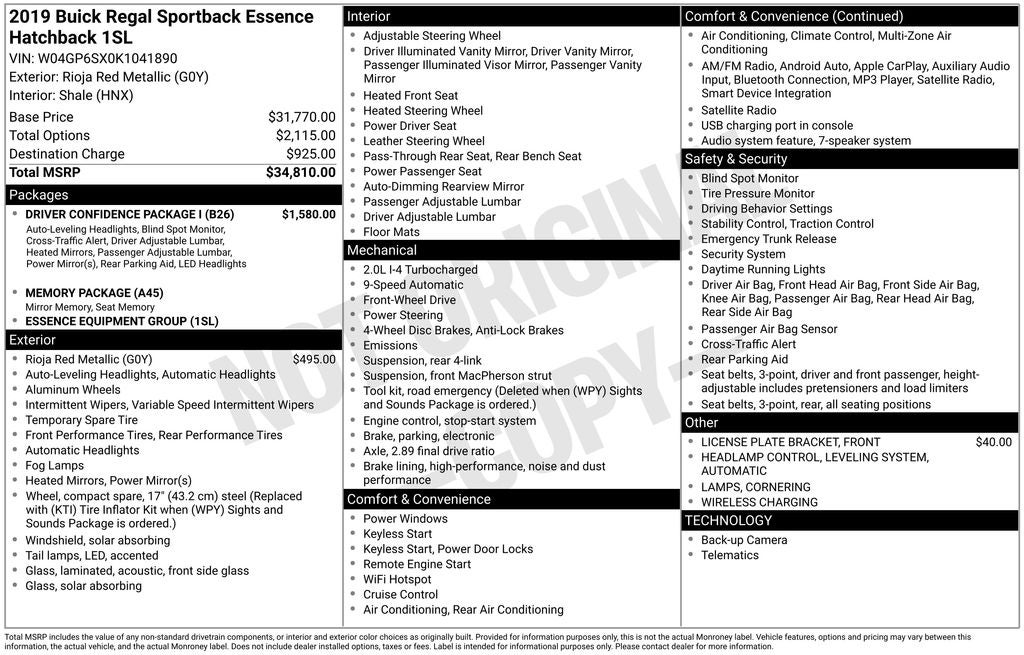 This 2019 Buick Regal Essence is a true standout in its class, offering a captivating blend of style, performance, and technology. Experience the difference for yourself by scheduling a test drive at our showroom. We're confident you'll be impressed by the exceptional value and driving experience this Regal Essence has to offer.
