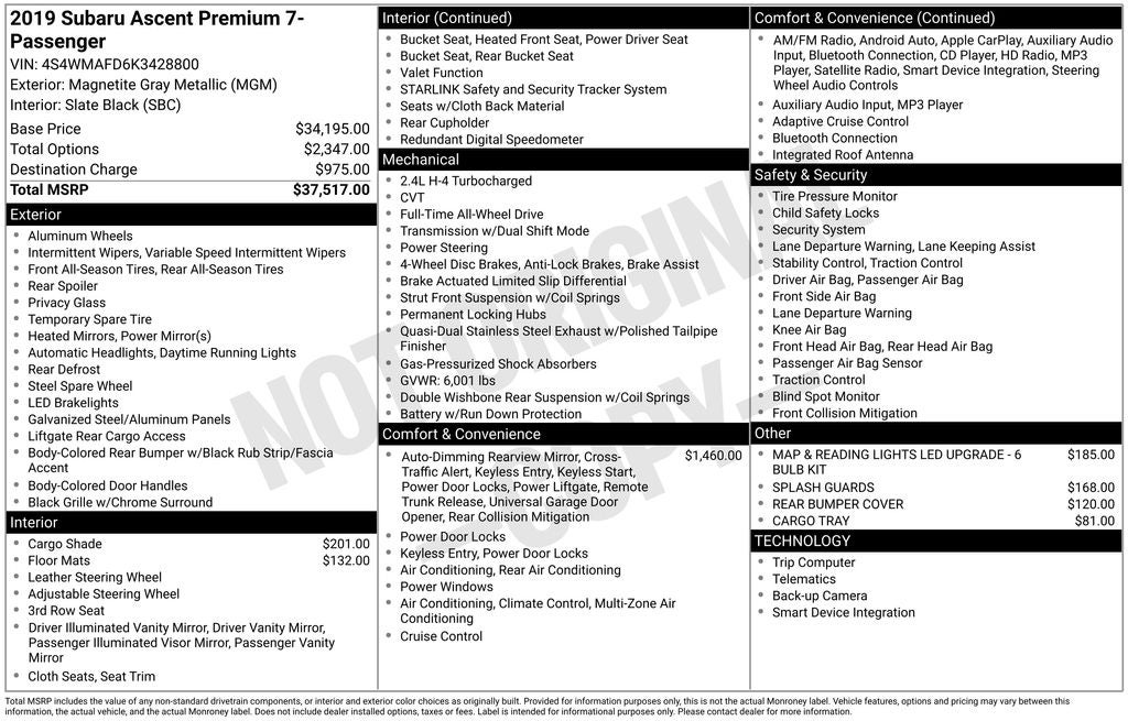 - Vehicle Name: Subaru Ascent