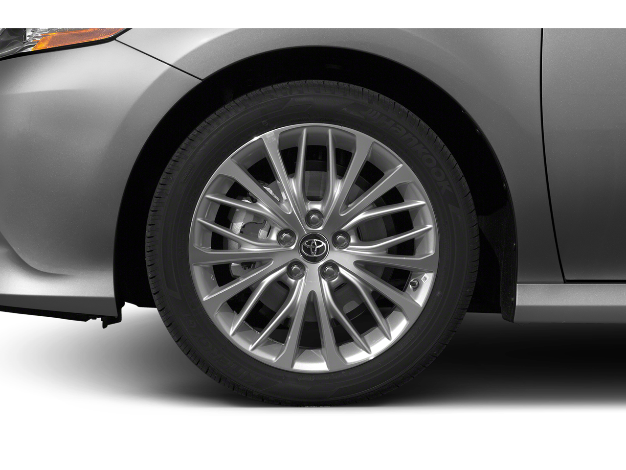 Elevate your driving experience with the Camry Hybrid XLE's sophisticated exterior, featuring 18-inch chrome machined-finish alloy wheels and body-color bumpers that exude a refined and modern aesthetic.
