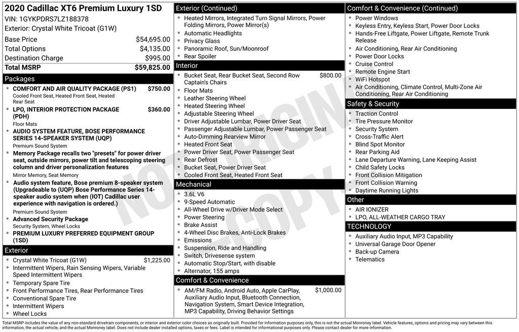 Whether you're looking for a versatile family hauler or a sophisticated luxury vehicle, this 2020 Cadillac XT6 Premium Luxury is sure to impress. Experience the exceptional craftsmanship, cutting-edge features, and impressive performance that Cadillac is known for.