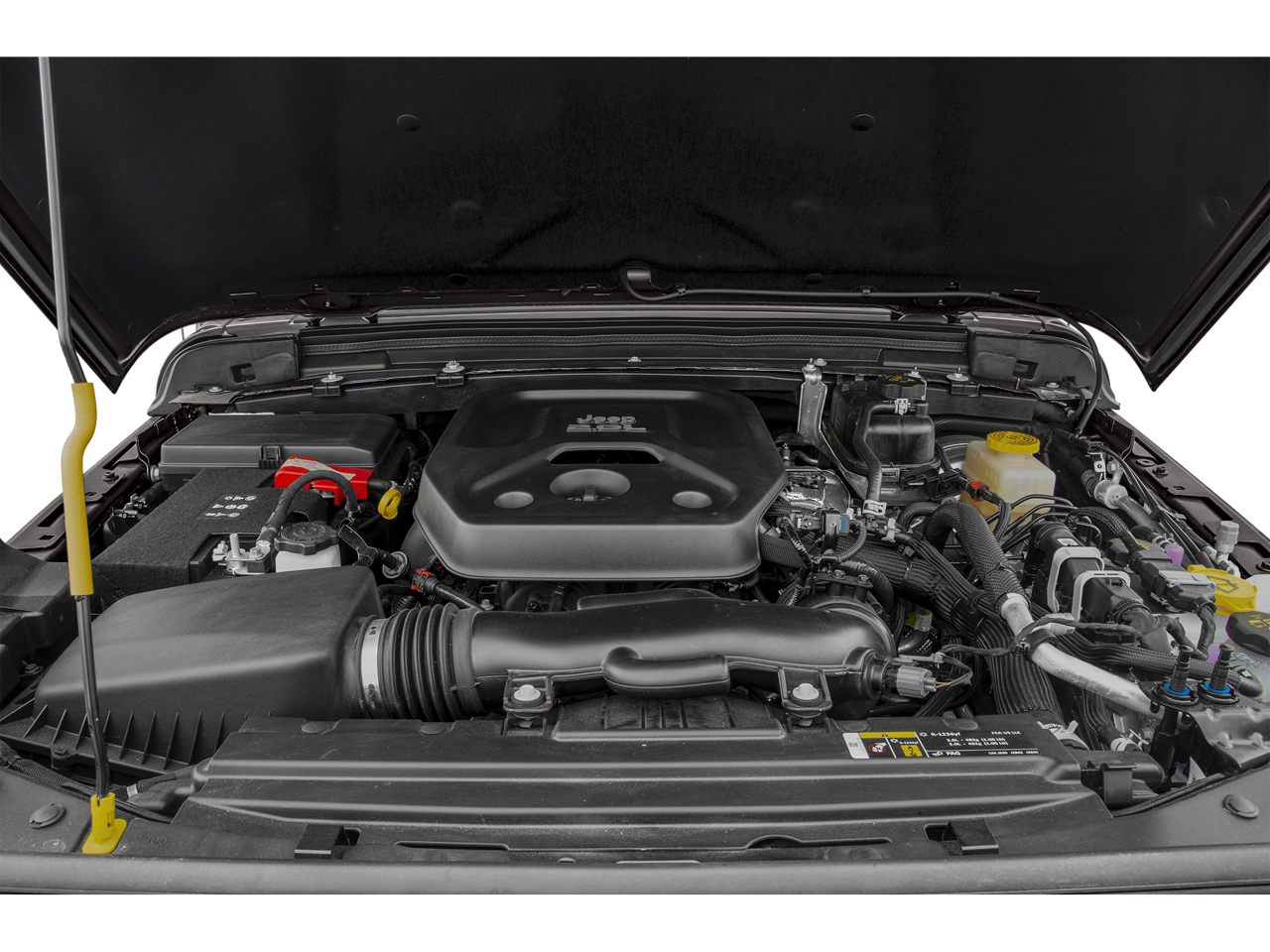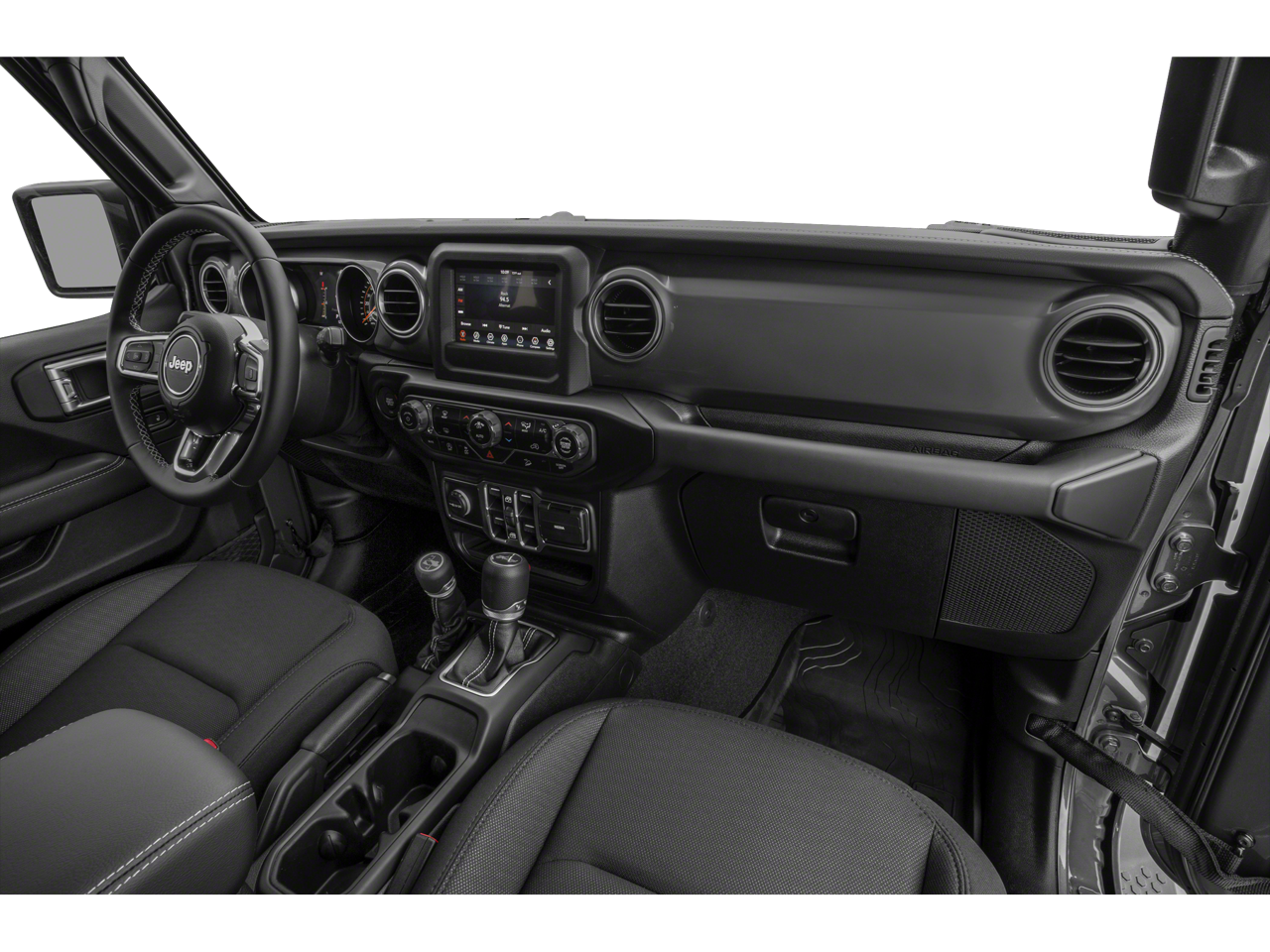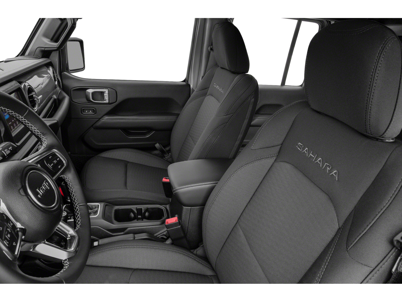 Step inside and experience the epitome of modern luxury. The Black Leather-Trimmed Seats with Sahara Logo, Premium Wrapped Interior Bezels, and Leather-Wrapped Shift Knob and Park Brake Handle create an inviting and refined cabin. The 8.4 Touchscreen Display with Uconnect 4C Navigation, Alpine Premium Audio System, and 4G LTE Wi-Fi Hotspot keep you connected and entertained on every journey.