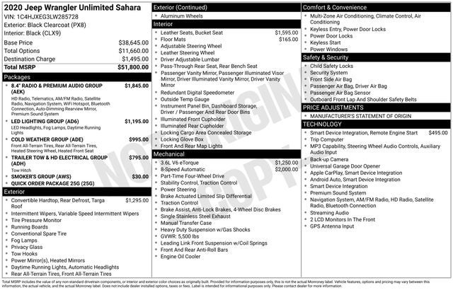 Whether you're seeking the ultimate off-road experience or a refined and versatile daily driver, this 2020 Jeep Wrangler Unlimited Sahara is the perfect choice. Discover the perfect blend of capability, technology, and comfort that will elevate your driving experience to new heights. Visit our showroom today and let us help you make this exceptional Wrangler Unlimited Sahara yours.