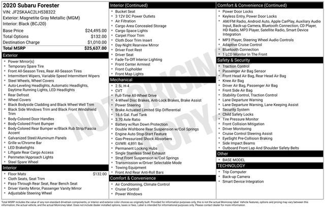 Discover the versatility and sophistication of the 2020 Subaru Forester Base. This all-wheel-drive SUV combines exceptional capability, advanced technology, and a spacious, well-appointed interior, making it the perfect companion for your everyday adventures.