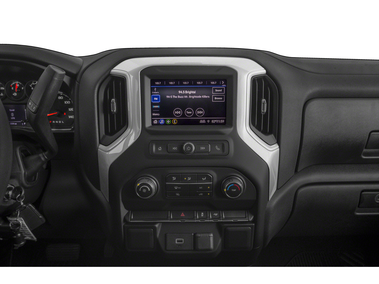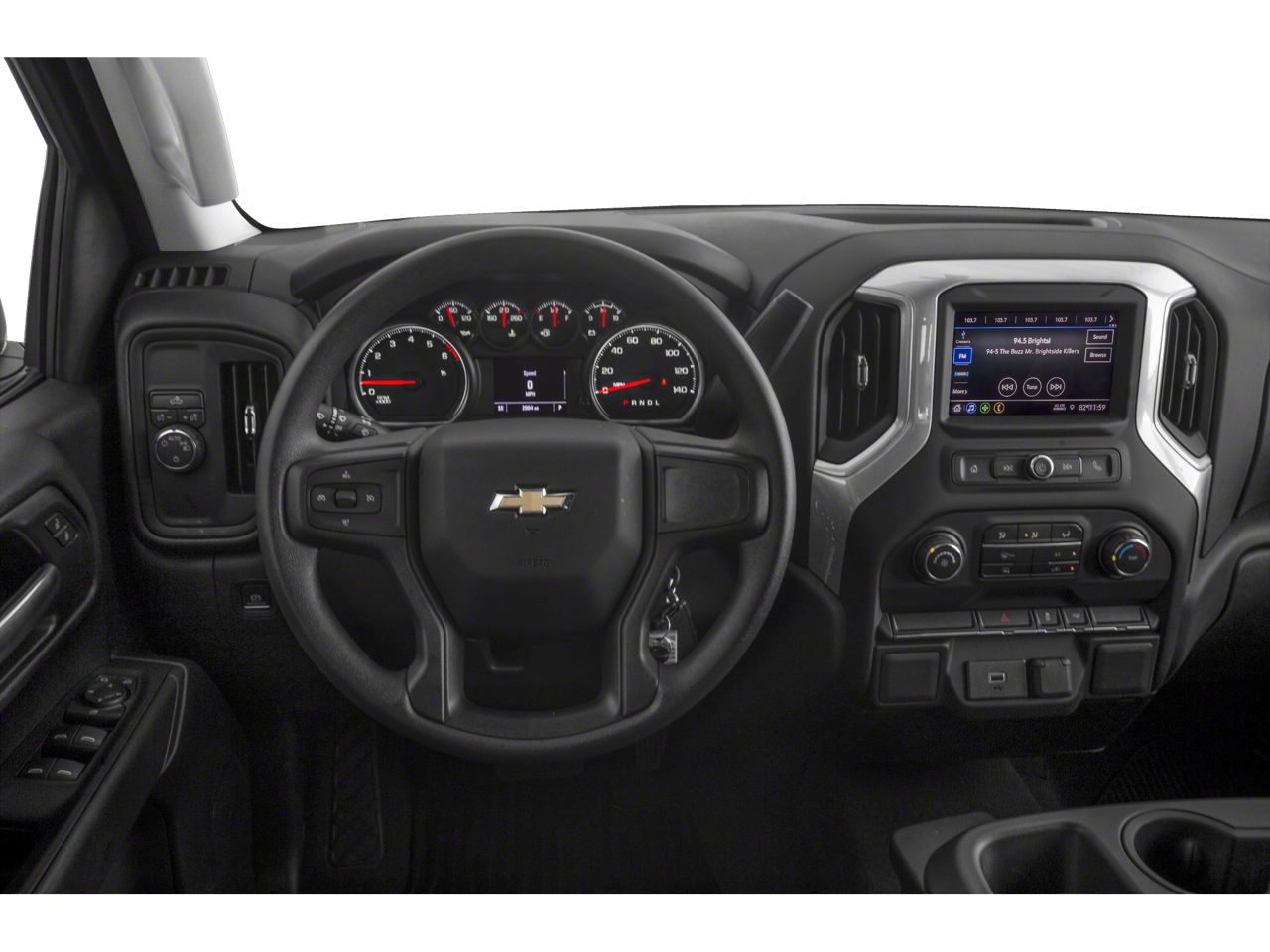 Inside, the Silverado 1500 Custom offers a well-appointed and versatile cabin. The 40/20/40 split front bench seat and 60/40 folding rear bench provide ample seating and cargo flexibility, while the Chevrolet Infotainment 3 system with Apple CarPlay and Android Auto integration keeps you connected and entertained.