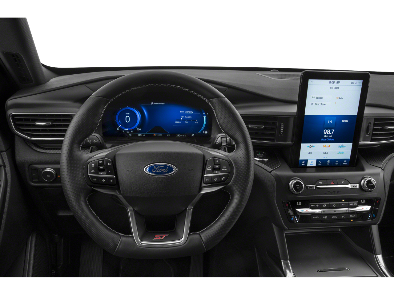 The interior of the Explorer ST is designed with your comfort and convenience in mind. Sink into the plush, ventilated front seats and take in the panoramic views through the twin-panel moonroof. The SYNC 3 infotainment system, complete with voice-activated navigation, Apple CarPlay, and Android Auto, keeps you connected and in control.