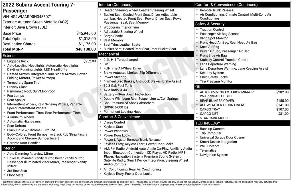 - Vehicle Name: Subaru Ascent