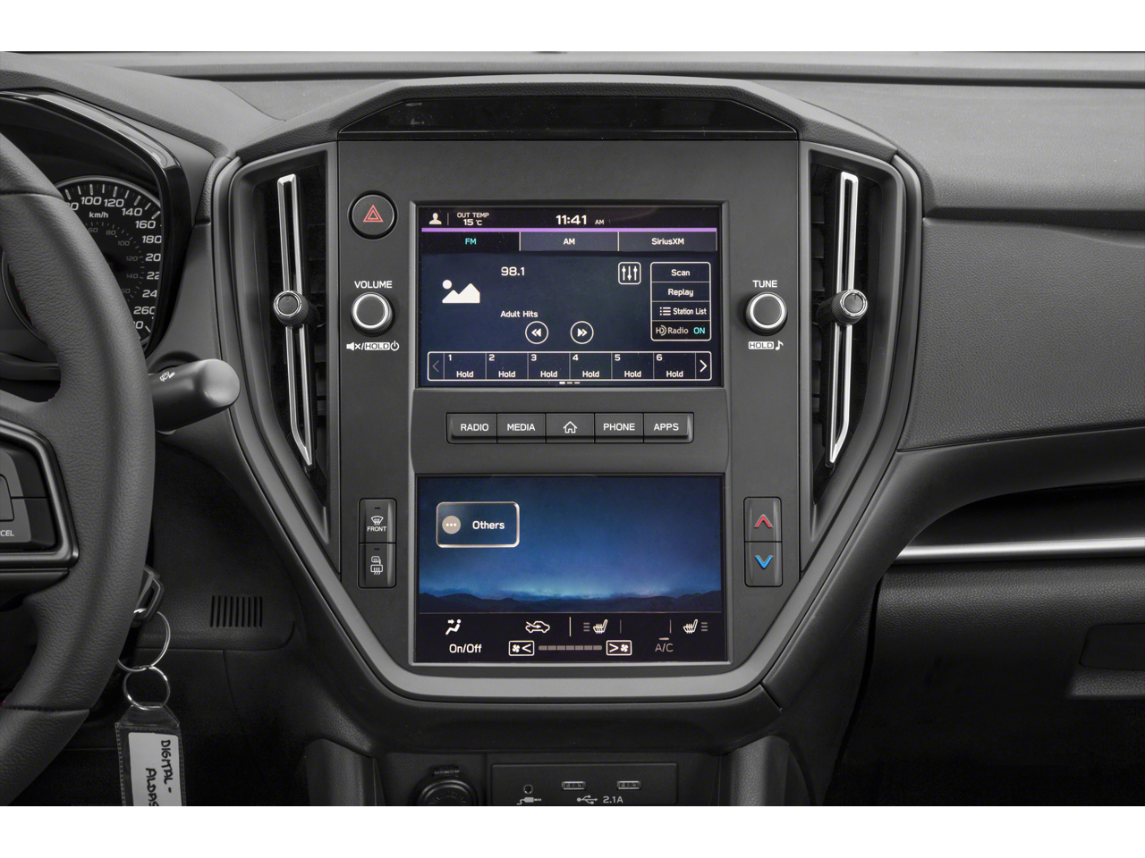 - Radio: Subaru STARLINK Dual 7" Multimedia Plus Sys -inc: AM/FM stereo HD Radio, multi-touch gesture high resolution display screen, voice activated controls, Bluetooth® audio streaming connectivity, Bluetooth® hands-free phone connectivity, Bluetooth® hands-free SMS text messaging connectivity (applicable w/compatible cell phone), Near Field Communication (NFC), iPod control capability, rear-vision camera display, SiriusXM All Access radio (4 months free trial/subscription required after), SiriusXM Travel Link (4 months free trial/subscription required after), smartphone integration: Android Auto, CarPlay, STARLINK cloud applications, 6 speakers and roof mounted audio and satellite antenna