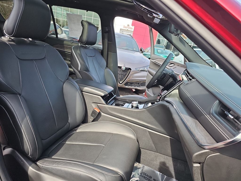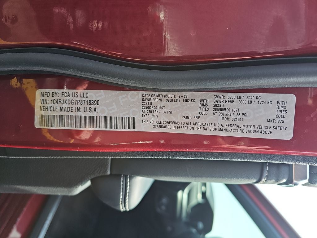 Certified. 2023 Jeep Grand Cherokee L Overland Velvet Red Pearlcoat 10 Speakers, 2nd Row Manual Window Shades, 3.45 Rear Axle Ratio, 3rd row seats: split-bench, 4-Wheel Disc Brakes, ABS brakes, Active Noise Control System, Adaptive suspension, Air Conditioning, Alloy wheels, AM/FM radio: SiriusXM with 360L, Anti-whiplash front head restraints, ATC w/4 Zone Temp Control, Audio memory, Auto High-beam Headlights, Auto-dimming door mirrors, Auto-dimming Rear-View mirror, Auto-leveling suspension, Automatic temperature control, Brake assist, Bumpers: body-color, Compass, Delay-off headlights, Driver door bin, Driver Power Seat Back Massage, Driver vanity mirror, Dual front impact airbags, Dual front side impact airbags, Electronic Stability Control, Emergency communication system, Four wheel independent suspension, Front anti-roll bar, Front Bucket Seats, Front Center Armrest w/Storage, Front dual zone A/C, Front fog lights, Front Passenger Power Seat Back Massage, Front reading lights, Fully automatic headlights, Garage door transmitter, Heated door mirrors, Heated front seats, Heated rear seats, Heated steering wheel, Illuminated entry, Knee airbag, Low tire pressure warning, Luxury Tech Group IV, Memory seat, Nappa Leather Seats, Nappa Leather Seats (TL), Navigation System, Normal Duty Suspension, Occupant sensing airbag, Outside temperature display, Overhead airbag, Overhead console, Panic alarm, Passenger door bin, Passenger Seat Memory, Passenger vanity mirror, Power Adjust 12-Way Driver Seat, Power Adjust 12-Way Front Passenger Seat, Power door mirrors, Power driver seat, Power Fold Seatbacks, Power Liftgate, Power moonroof, Power passenger seat, Power steering, Power windows, Quick Order Package 23N, Radio data system, Radio: Uconnect 5 Nav w/10.1 Display, Rain sensing wipers, Rear air conditioning, Rear anti-roll bar, Rear reading lights, Rear window defroster, Rear window wiper, Rearview Autodim Digital Display Mirror, Reclining 3rd row seat, Remote keyless entry, Security system, Speed control, Speed-Sensitive Wipers, Split folding rear seat, Spoiler, Steering wheel memory, Steering wheel mounted audio controls, Tachometer, Telescoping steering wheel, Tilt steering wheel, Traction control, Trip computer, Turn signal indicator mirrors, Variably intermittent wipers, Ventilated front seats, Voltmeter, Wheels: 20 x 8.5 Machined Face Aluminum, Wireless Charging Pad.