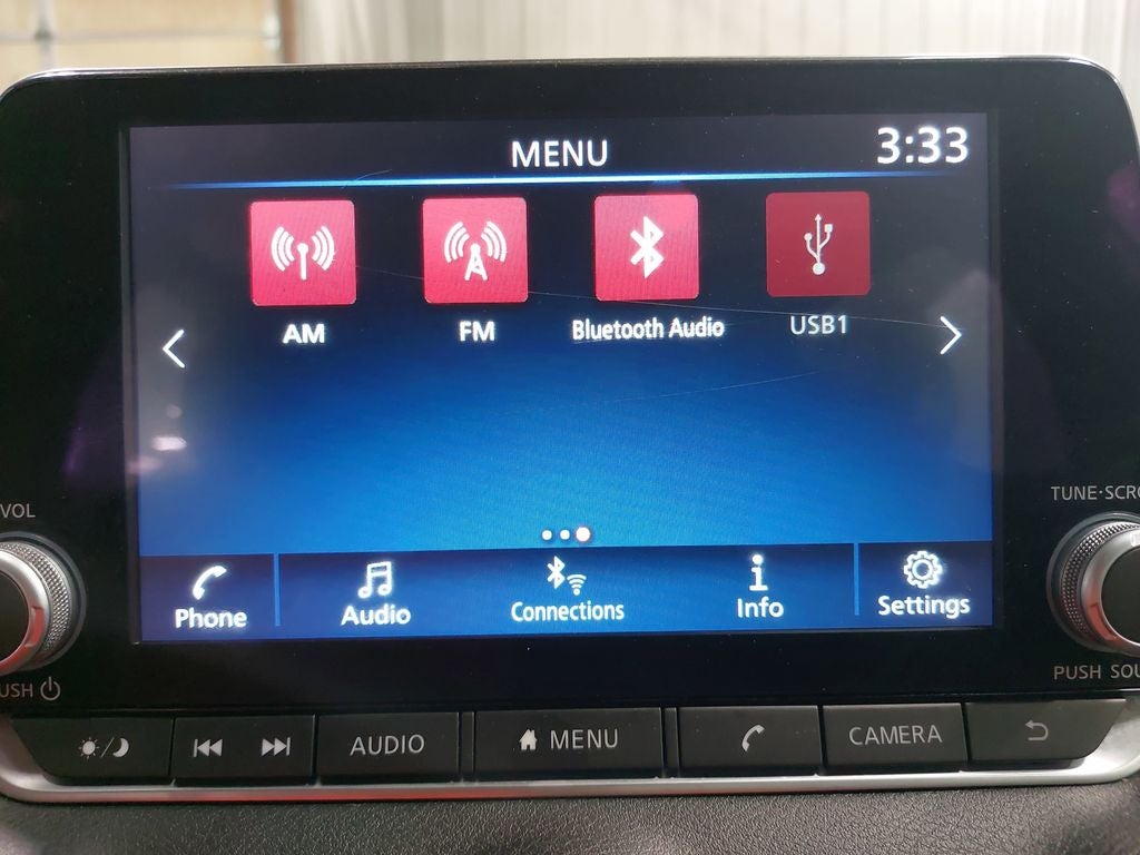 - Radio: AM/FM w/RDS/MP3/Aux-In -inc: 6 speakers plus 2 tweeters in A-pillar, 8" color display w/multi-touch control, streaming audio via Bluetooth®, Bluetooth® hands-free phone system, hands-free text messaging assistant, Siri eyes free, Google Assistant voice recognition w/Apple CarPlay and Android Auto, NissanConnect, (1) front USB connection port (type A), (1) additional front USB (type C) and (1) charge-only USB (type A) center console and SiriusXM radio w/advanced audio features