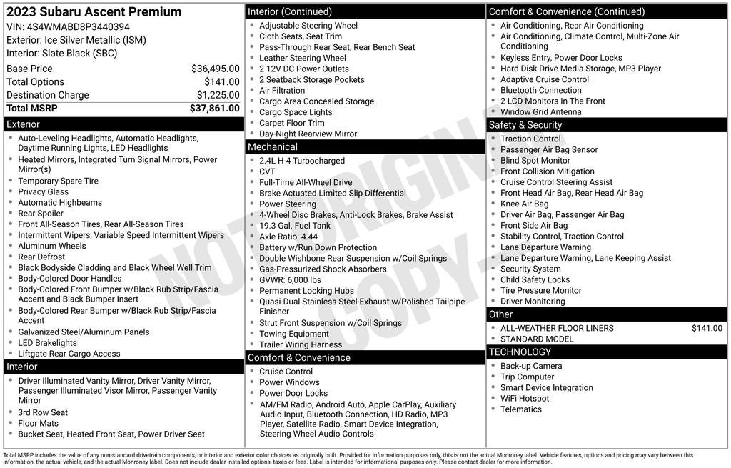 - Vehicle Name: Subaru Ascent