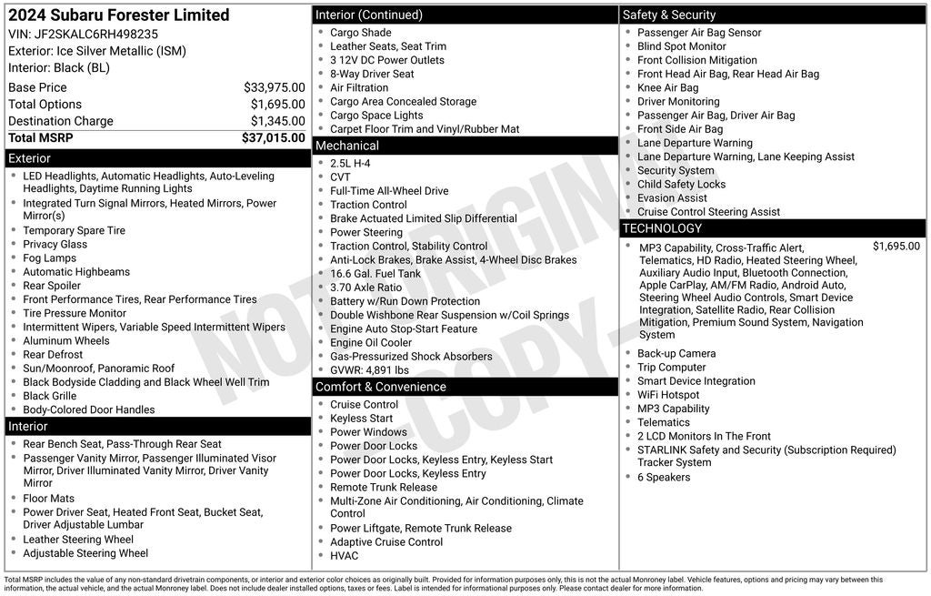 - Vehicle Name: Subaru Forester