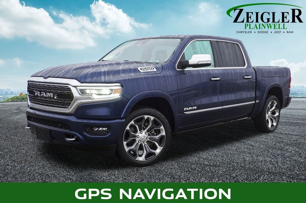 Patriot Blue Pearlcoat 2021 Ram 1500 Limited 4WD 8-Speed Automatic HEMI 5.7L V8 Multi Displacement VVT 12" Touchscreen Display, 4G LTE Wi-Fi Hot Spot, Adaptive Cruise Control w/Stop & Go, AM/FM radio: SiriusXM with 360L, Apple CarPlay, Body Color Bumper Group, Body Color Front Bumper, Body Color Rear Bumper w/Step Pads, Brake assist, Electronic Stability Control, Emergency communication system: SiriusXM Guardian, Exterior 115V AC Outlet, Google Android Auto, GPS Navigation, Heated door mirrors, Heated front seats, Heated rear seats, Integrated Voice Command w/Bluetooth, Lane Keep Assist, Limited Level 1 Equipment Group, Parallel & Perp Park Assist w/Stop, ParkView Rear Back-Up Camera, Pedestrian Emergency Braking, Power door mirrors, Quick Order Package 27M Limited, Radio: Uconnect 12 w/Navigation, RamBox Cargo Management System, Security system, SiriusXM Traffic Plus, SiriusXM Travel Link, SiriusXM w/360L, Surround View Camera System, Turn signal indicator mirrors, USB Host Flip, Ventilated Rear Seats.